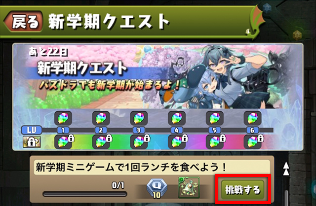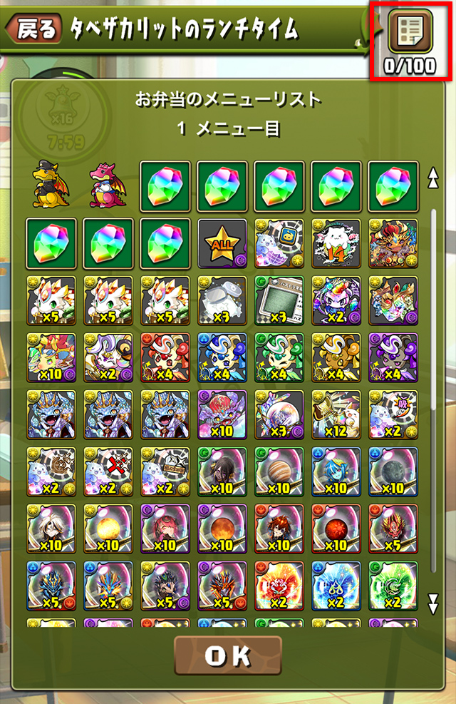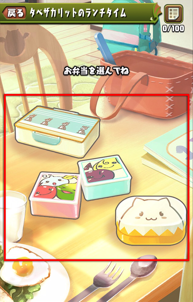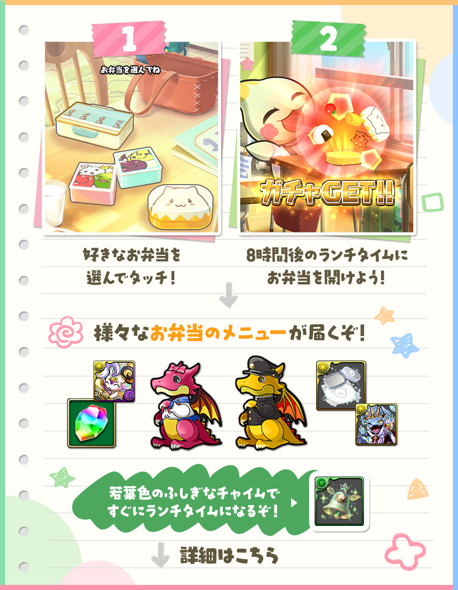 「★7以上新学期ガチャ」「新学期ガチャ」「魔法石」など、たくさんのお弁当のメニューが手に入るぞ!