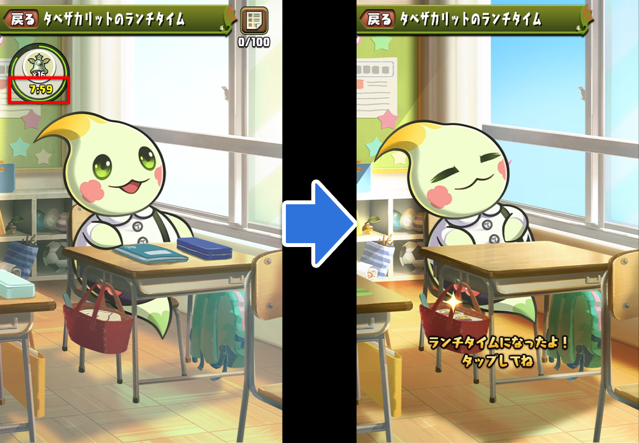 左上に表示されている時間が経過すると、ランチタイムになるぞ!